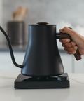 A Fellow Stagg EKG egy elektromos vízforraló keskeny és hosszú kifolyóval, úgynevezett hattyúnyak, amely lehetővé teszi a kiöntési folyamat szabályozását az egyenletesebb főzés érdekében.